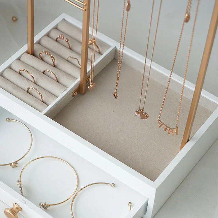 Lapisan ndhuwur mbukak area tampilan: Pigura logam Golden, cocok kanggo hanging kalung, anting, lan gelang. Iku gampang kanggo ndeleng lan bisa diakses yen perlu.