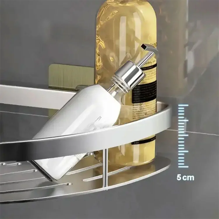 A: Digawe saka kualitas dhuwur 304 stainless steel lan nampilaken struktur segitiga stabil, iku umume bisa ndhukung bobot saka 5-10 kilograms. Rak jedhing stainless steel tahan karat iki cocog kanggo nyelehake produk bath, botol saos, lsp.